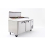 Atosa Refrigerated Pizza Prep Table, two-section, 67"W x 33-1/10"D x 44"H, side-mounted self-contained refrigeration, 18.5 cu. ft., (2) self-closing hinged solid doors with locks, digital temperature control, 33° to 38°F temperature range, automatic evaporation, air defrost, includes, (4) shelves, 19" poly cutting board, (9) 1/3 stainless steel pans, stainless steel interior & exterior, galvanized steel back, 5" casters, R290 Hydrocarbon refrigerant, 1/5 HP, 2.8 amps, 115v/60/1-ph, cord, NEMA 5-15P, cETLus, ETL-Sanitation